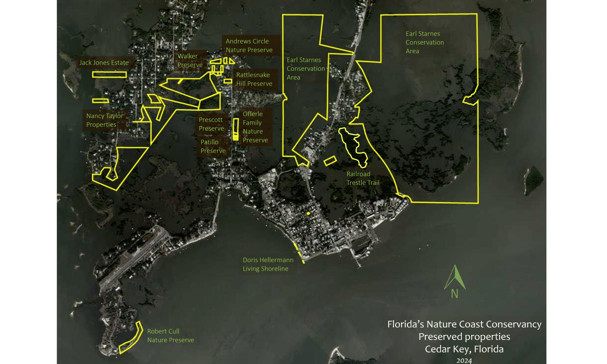 The FNCC owns land, water, and conservation easements in perpetuity for the purpose of preservation and limited public recreation. A board of directors oversees the work of the FNCC. All members of the board are volunteers. Become a member today! t is located in Cedar Key, Florida and is an IRS 501C3 designated land trust.